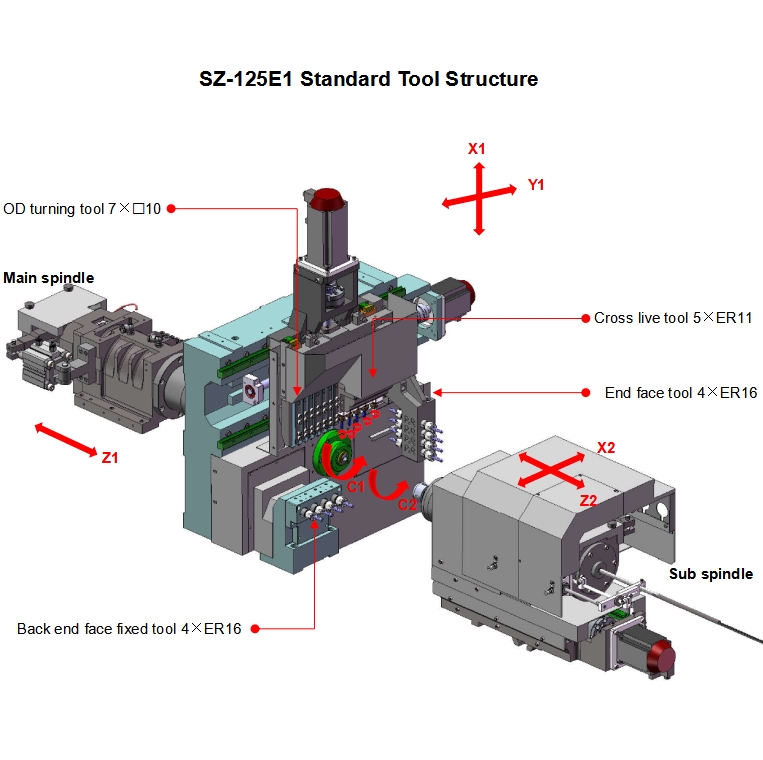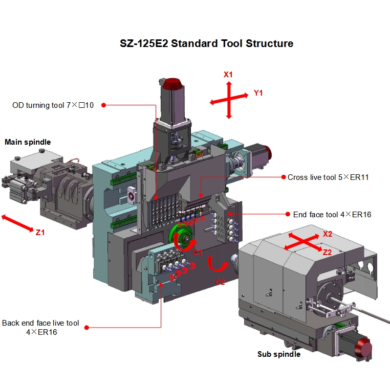| Модель | SZ-125E15-осевой, 2 шпинделя | SZ-125E25-осевой, 2 шпинделя | |||